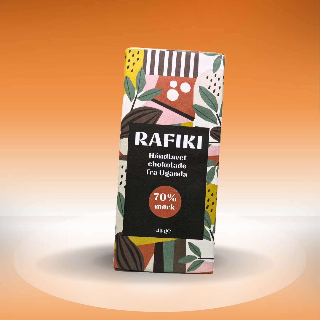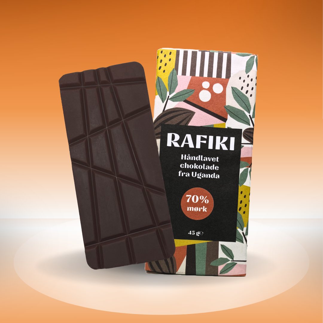 Rafiki 70% mørk håndlavet chokolade fra Uganda. 45g